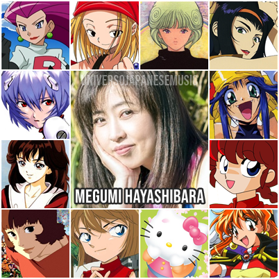 Megumi Hayashibara é uma seiyuu, letrista e cantora japonesa. Nascida no dia 30 de março 1967, em Tóquio. Hayashibara é uma das seiyuus de maior destaque dos anos 90. Ela teve vários papeis importantes em sua carreira, ficou conhecida por interpretar em Ranma ½, Neon Genesis Evangelion, Comboy Bebop, Saber Marionette J, Slayers, Detetive Conan, Pokémon, Love Hina, Video Girl Ai e Shaman King.
