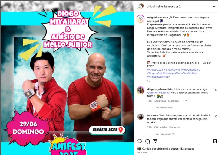 A Universo Japanese Music manifesta profundo pesar pela perda e presta suas condolências aos familiares, amigos e fãs que cresceram ao som de sua voz. O legado de Anísio seguirá vivo na memória afetiva de quem vibrou com cada episódio ao som de suas inesquecíveis canções.